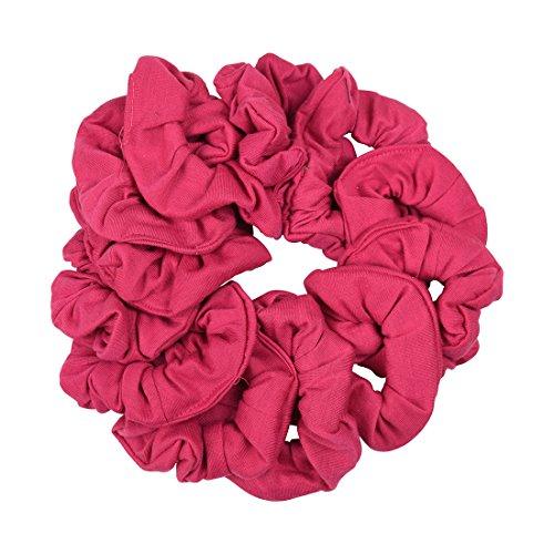 - Solid Jersey Cotton Fabric - These scrunchies are made of a solid stretchy jersey fabric with an inner elastic. The scrunchy is soft and gentle on the hair and leaves no pony mark.