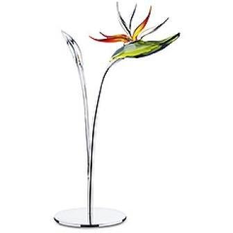 "Dalmally, Tropic Sun Bird-of-paradise flower in faceted Olivine crystal with accents in Tropic Sun crystal, rhodium-plated stem; removable rhodium-plated base. Designer: Yasmine Hurel Article no.: 673420 Size: 3 3/16 x 7 9/16 inch"